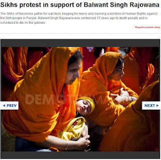 The Sikhs of Barcelona gather for a protest, begging for mercy and claiming a violation of Human Rights against the Sikh people in Punjab. Balwant Singh Rajowana was sentenced 17 years ago to death penalty and is scheduled to die on the gallows on 31st March 2012.